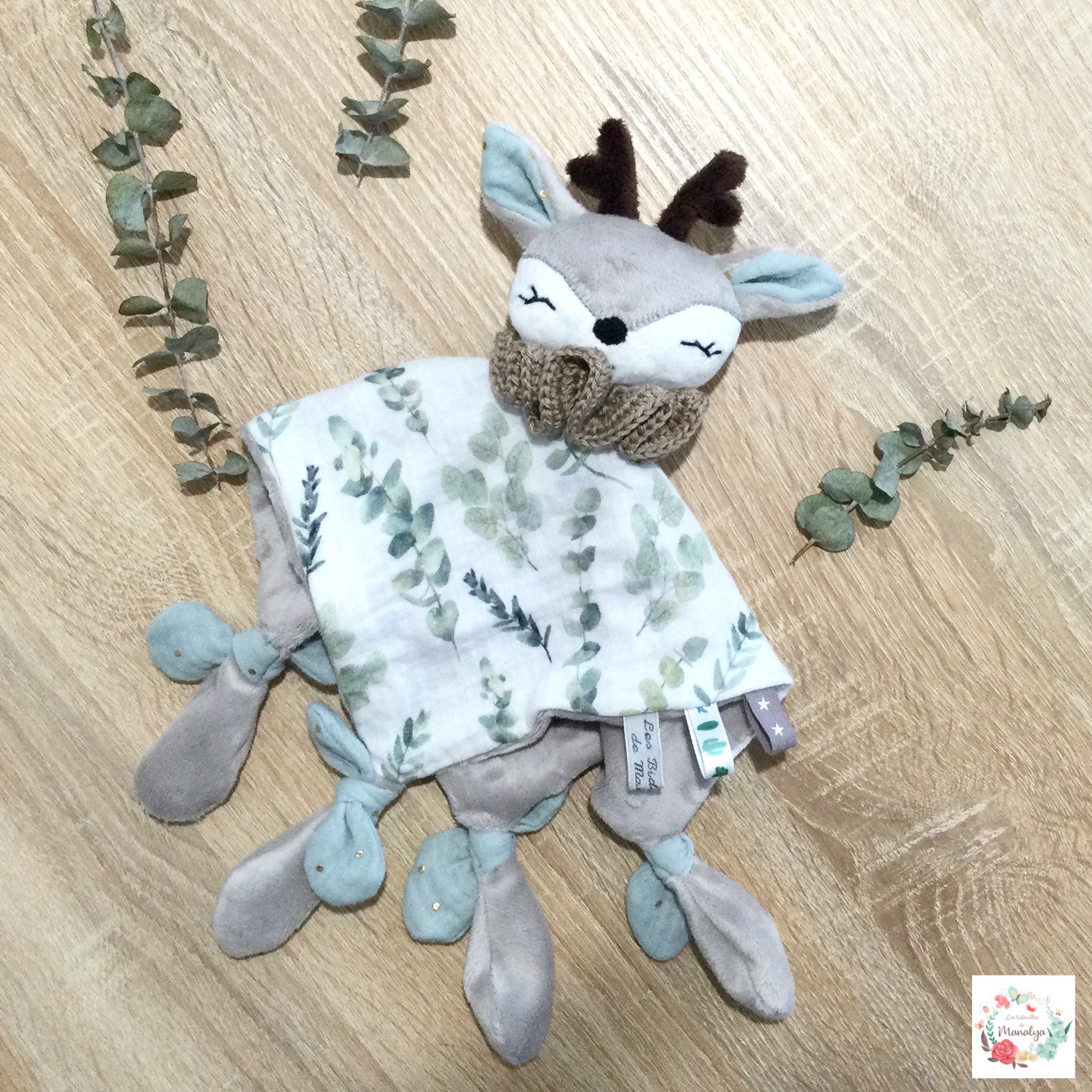 Doudou solidoux biche feuillage aquarelle eucalyptus