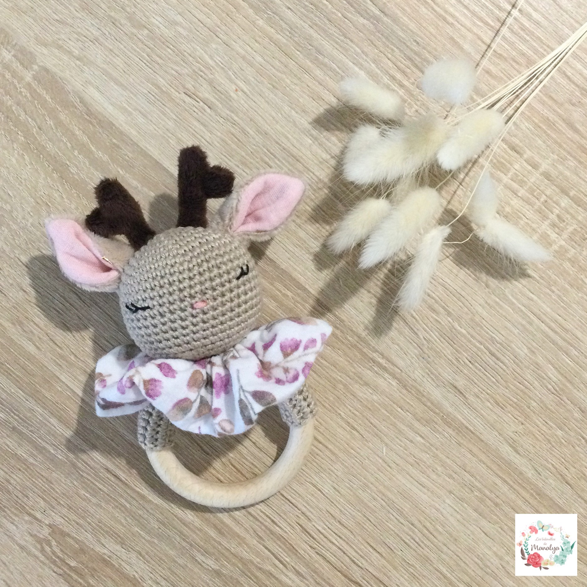 Hochet trop mignon avec sa collerette et ses oreilles en tissu. Il est idéal pour les touts petits comme pour les plus grands avec ses différentes textures ainsi que le son du grelot qui favorise l’éveil de bébé!