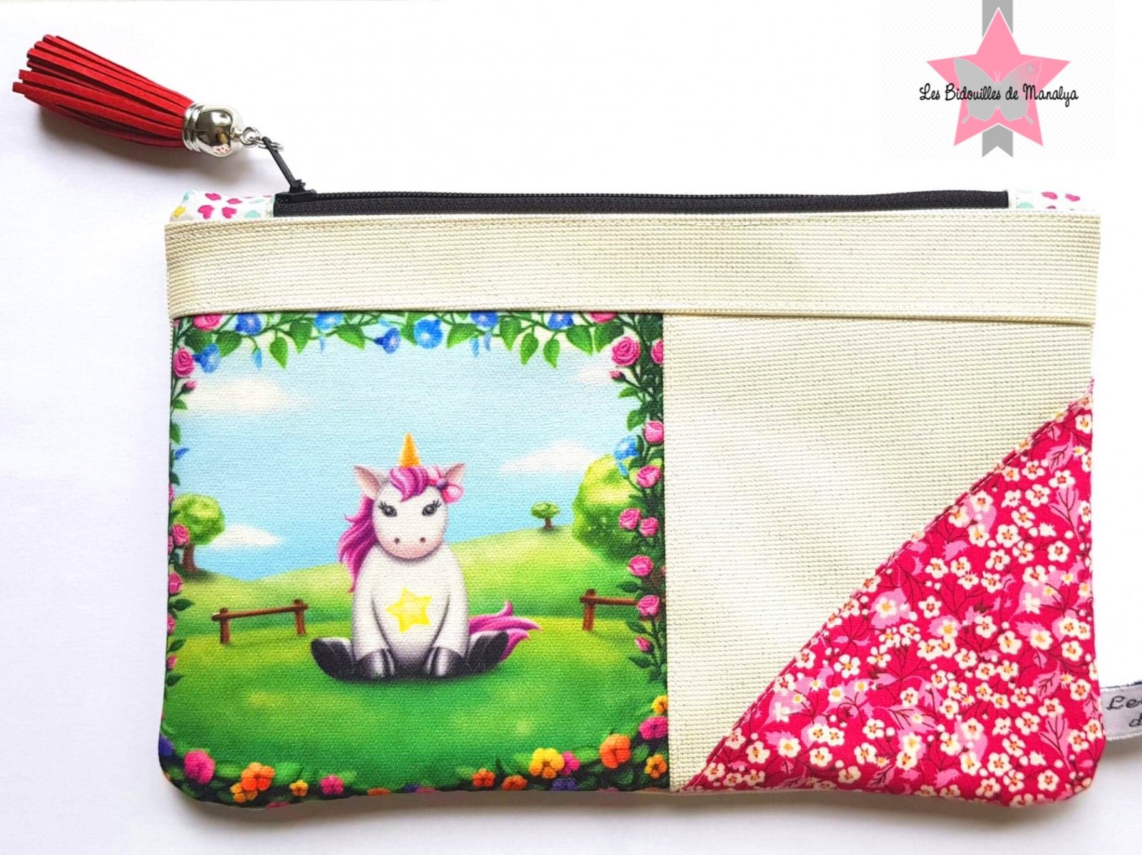 Pochette idéale pour ranger le petits bazars de toute la famille réalisée à partir d’un coupon illustré exclusif « Les Bidouilles de